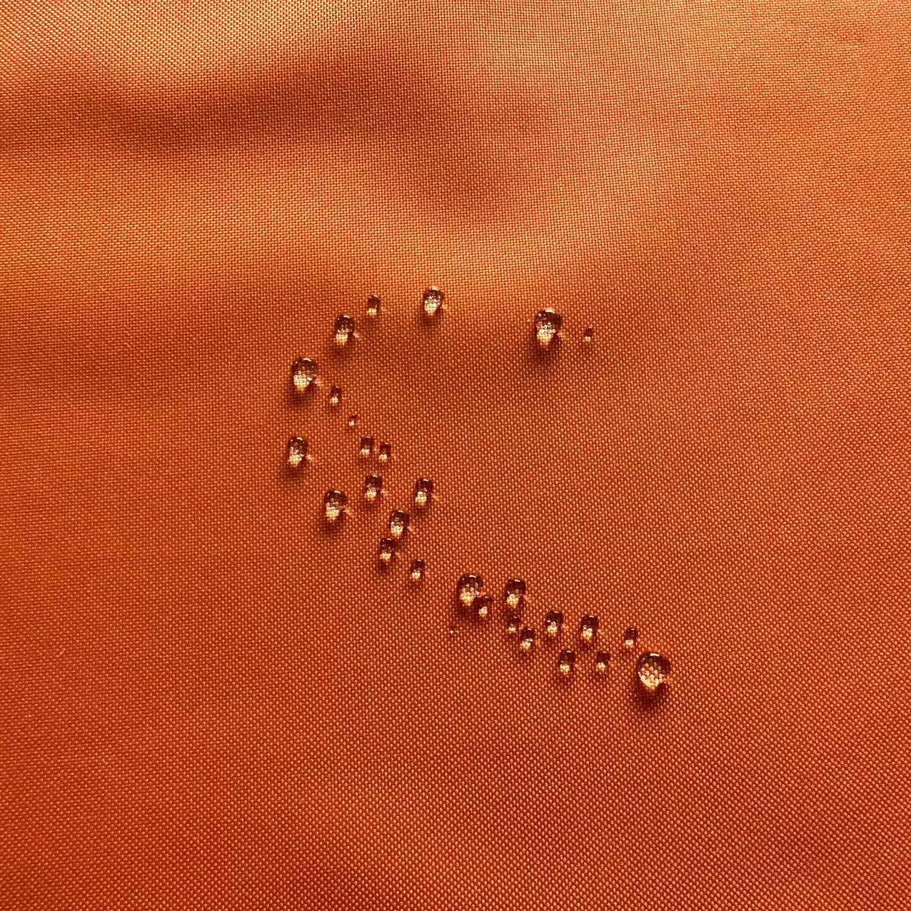 Il tessuto è rifinito con rivestimento in PU impermeabile e valutato a 5000mm di pressione dell'acqua, rendendolo adatto per gusci che devono resistere alla pioggia spinta dal vento e al contatto con l'umidità nell'uso esterno.