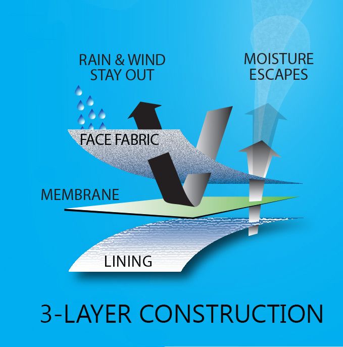 A respirabilidade é listada como 3,000 g/m²/24h, que é uma unidade padrão do estilo MVTR usada em tecidos impermeáveis e respiráveis.